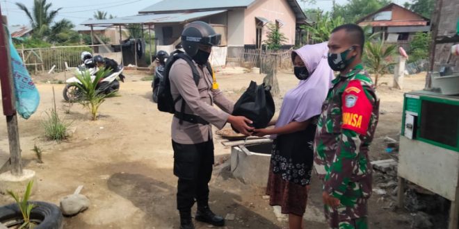 LHOKSEUMAWE – Ringankan beban ekonomi masyarakat di masa pandemi Covid-19, Polsek Banda Sakti, Polres Lhokseumawe menyalurkan bantuan dalam bentuk paket sembilan bahan pokok (sembako), Selasa (24/11/2020).