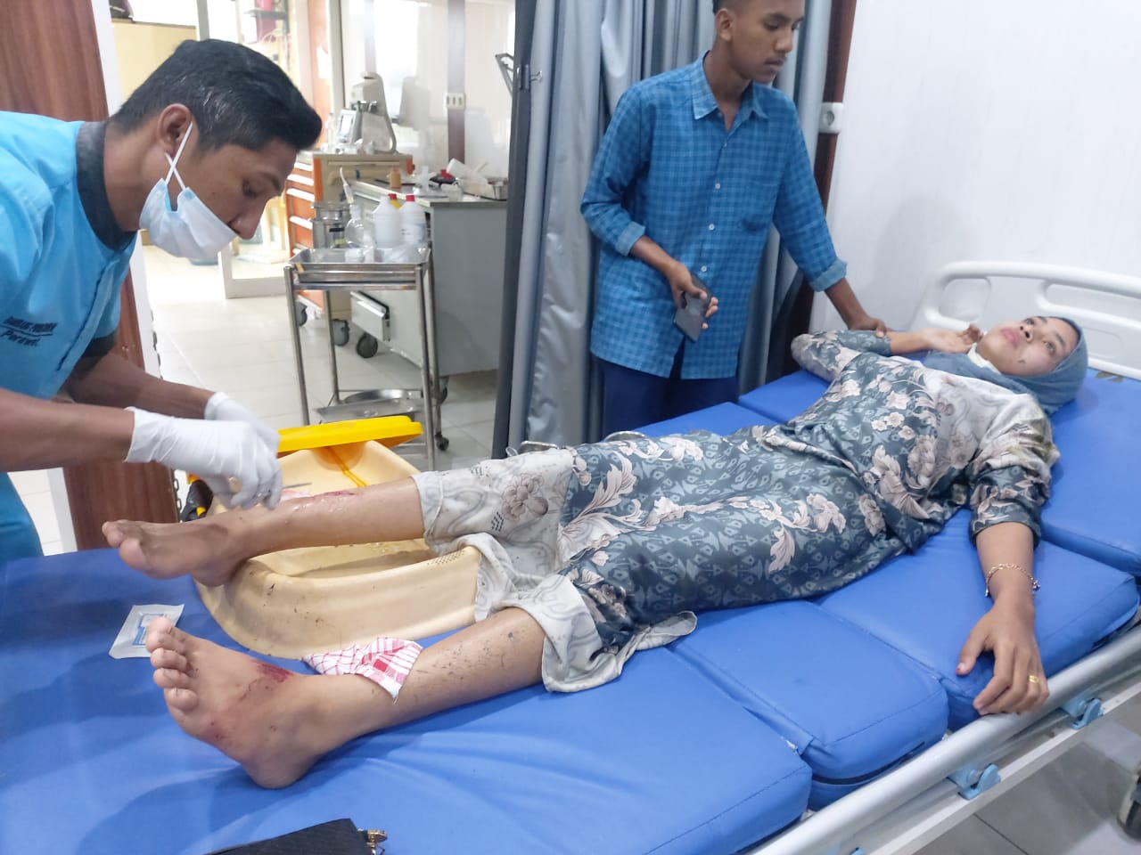 korban jambret di Desa Blang Panyang, Muara Satu, Kota Lhokseumawe dalam penanganan medis di RS Arun