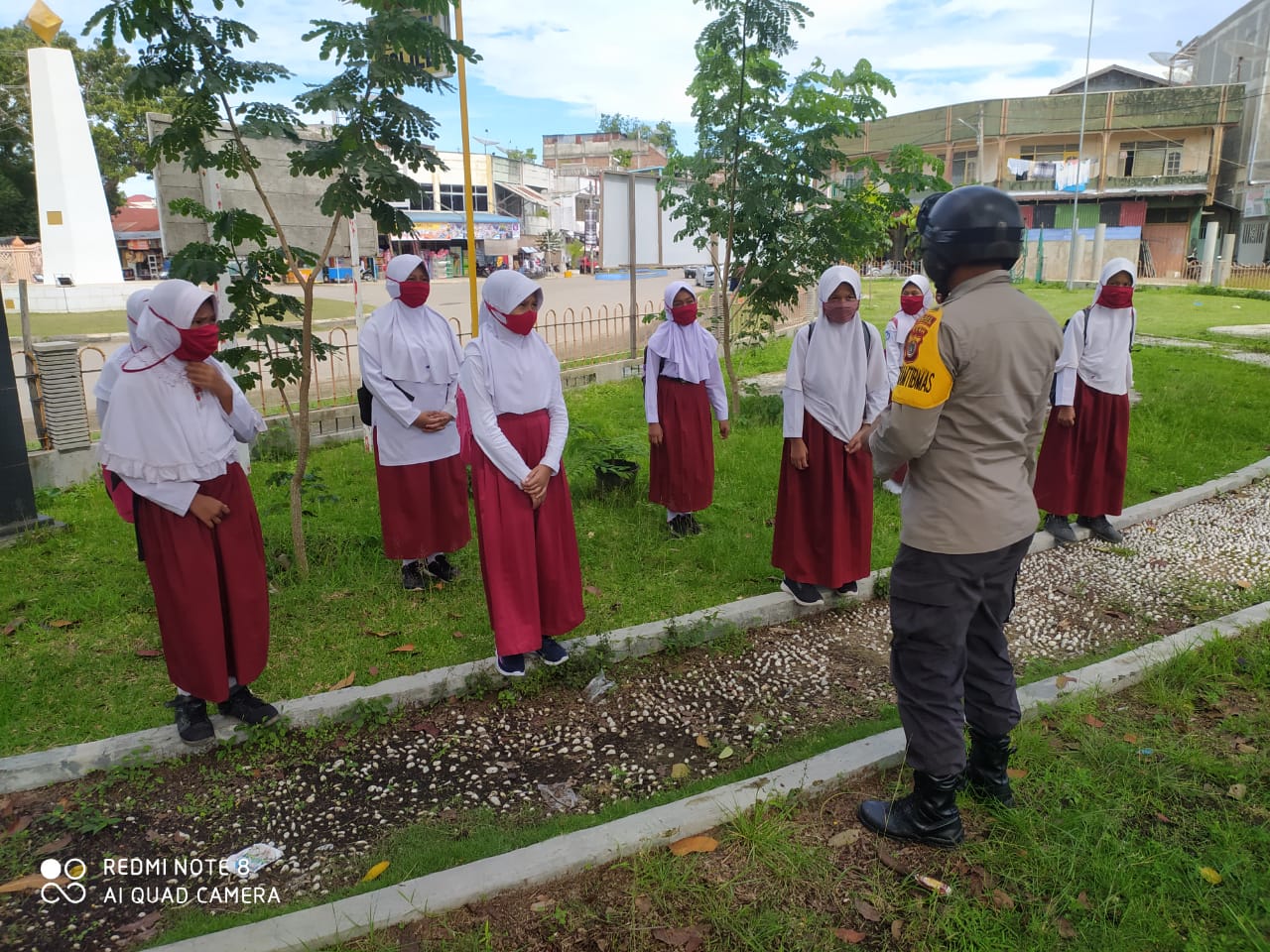LHOKSEUMAWE – Polsek Dewantara, Polres Lhokseumawe beri edukasi kepada pejalar terkait protokol kesehatan, Kamis (3/12/2020), kegiatan ini guna mencegah penyebaran Covid-19 di kalangan generasi penerus bangsa.