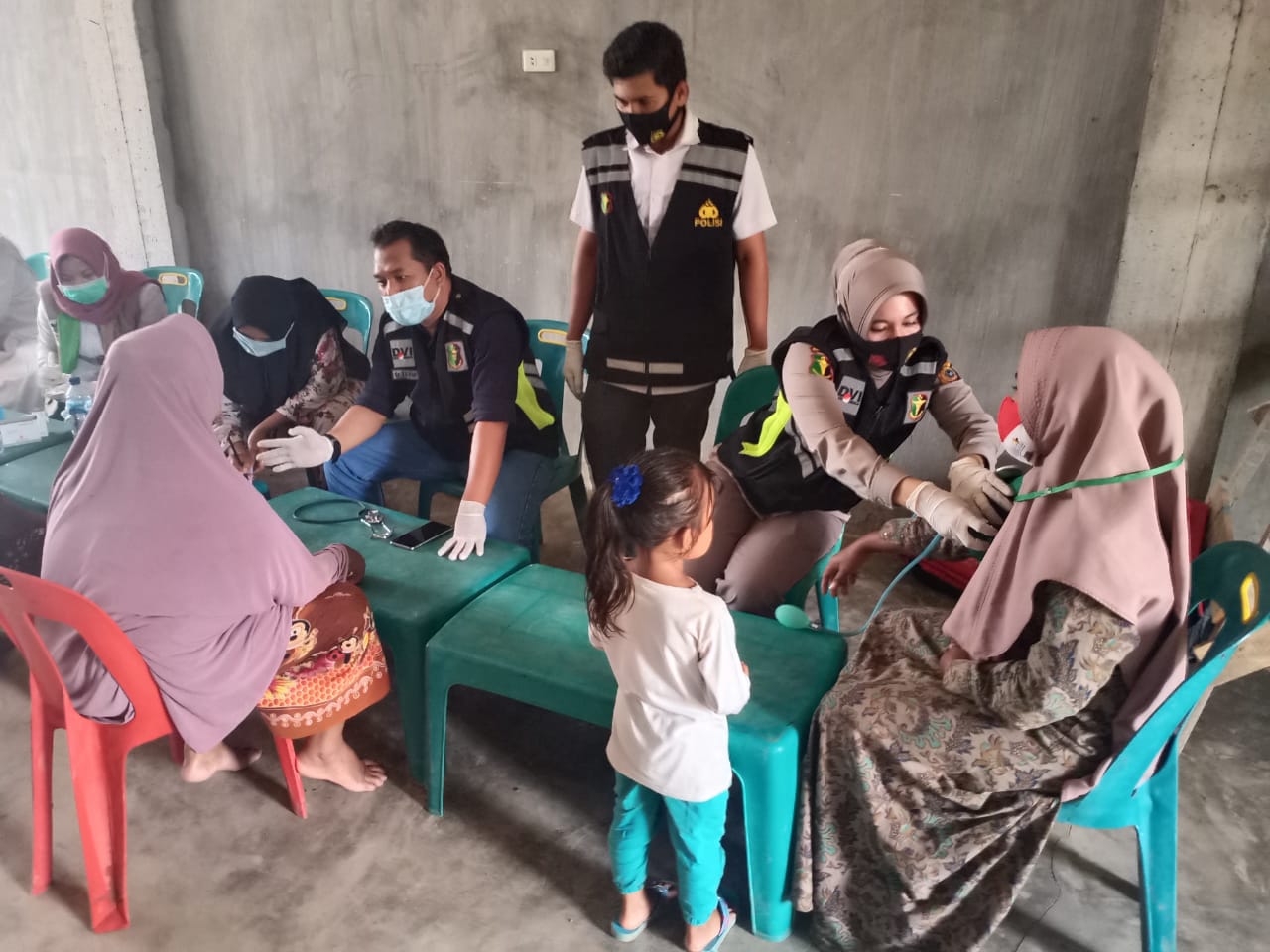 LHOKSEUMAWE – Polres Lhokseumawe mengerahkan sejumlah tim kesehatan untuk memberikan pengobatan kepada warga terdampak banjir yang mulai terserang penyakit.