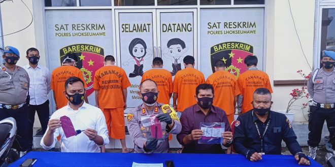 LHOKSEUMAWE – Polres Lhokseumawe menggelar konferensi pers keberhasilan Ops Sikat Seulawah tahun 2020, kegiatan berlangsung di depan gedung Satreskrim Polres Lhokseumawe, Selasa (8/12/2020).
