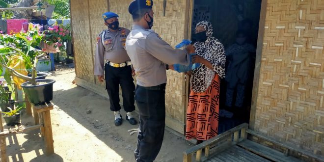LHOKSEUMAWE – Personel Polsek Muara Satu, Polres Lhokseumawe mengunjungi dan membagikan bantuan sosial berupa sembilan bahan pokok (sembako) kepada warga kurang mampu yang terdampak Covid-19, Selasa (1/12/2020).