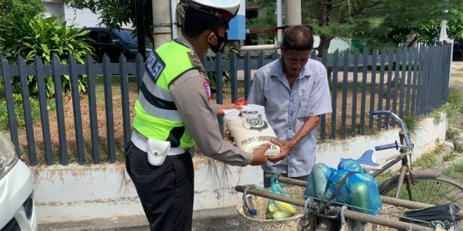 LHOKSEUMAWE – Satuan Lalulintas Polres Lhokseumawe memberikan bantuan bagi warga yang terdampak Covid-19, Senin (30/11/2020), bantuan berupa sembilan bahan pokok tersebut disalurkan di seputaran Kota Lhokseumawe,