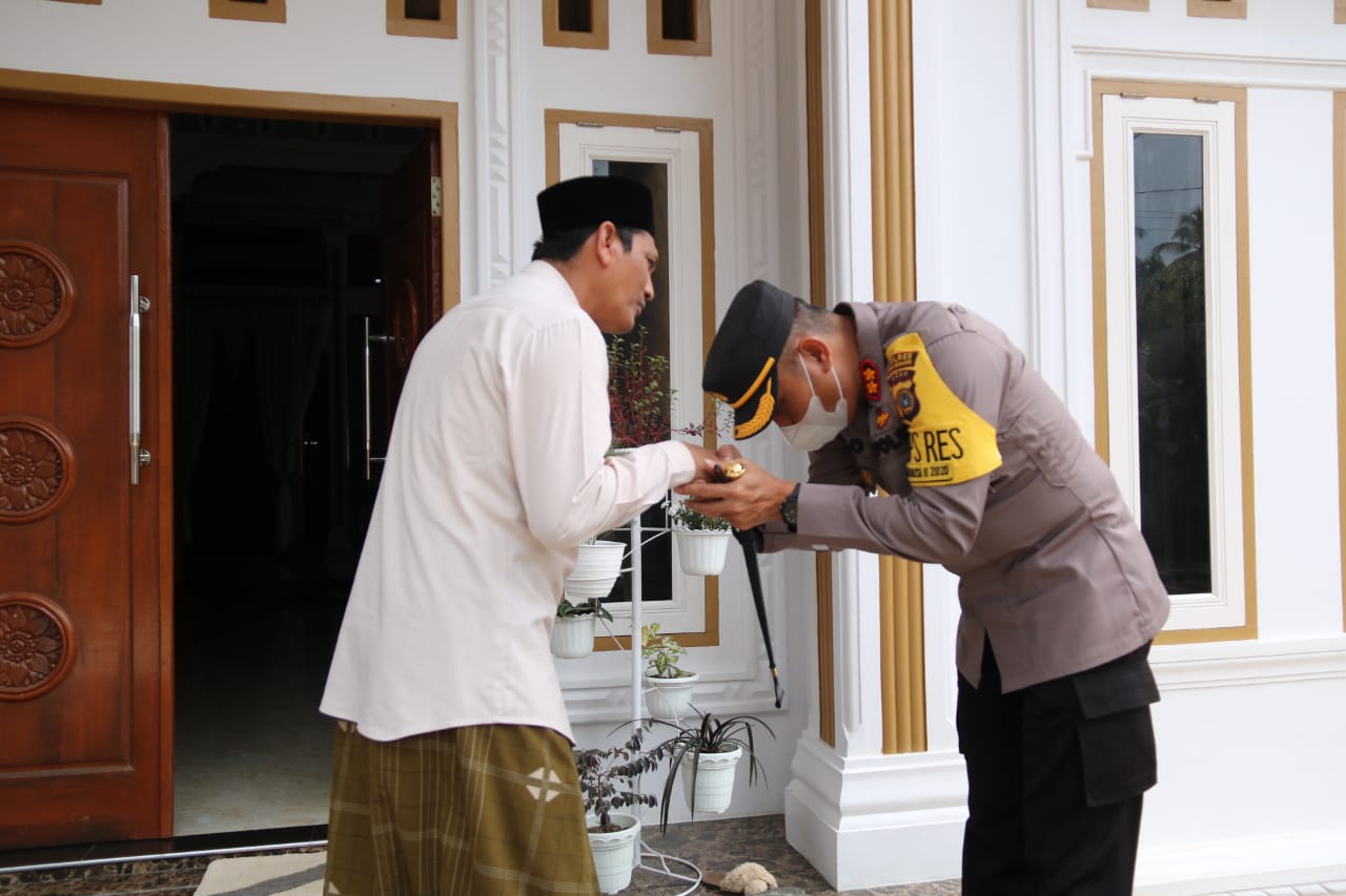 LHOKSEUMAWE – Kapolres Lhokseumawe, AKBP Eko Hartanto, S.I.K, M.H kembali mempererat silaturahmi bersama para ulama kharismatik dan kali ini berkunjung ke rumah ulama Waled Muzakir (Waled Lapang di kawasan Aceh Utara, rabu (06/01/2021) siang.