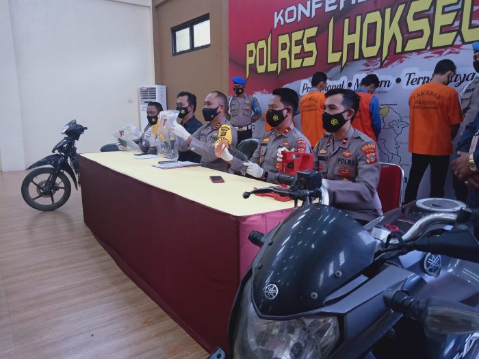 Kapolres Lhokseumawe, AKBP Eko Hartanto, SIK, MH didampingi Kapolsek Muara Satu, Iptu Muhammad Hadimas pada saat konferensi pers di gedung serbaguna Polres Lhokseumawe di hadapan awak media, Jumat (15/1/2021) mengatakan, tersangka ditangkap pada Rabu 13 Januari 2021 sekitar pukul 23.00 WIB dipinggir jalan raya tepatnya di Desa Batuphat Barat. Saat itu, tersangka F sedang menunggu angkutan umum hendak menuju ke Kota Medan, Sumatera Utara.
