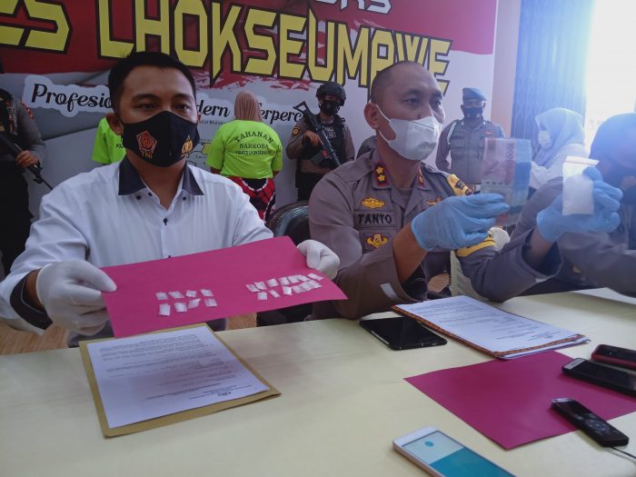 Kapolres Lhokseumawe AKBP Eko Hartanto SIK MH dalam konferensi pers kepada awak media di gedung serbaguna Mapolres Lhokseumawe, Senin (25/1/2021) mengatakan, tersangka BM alias M dibekuk Jumat (22/1/2021).