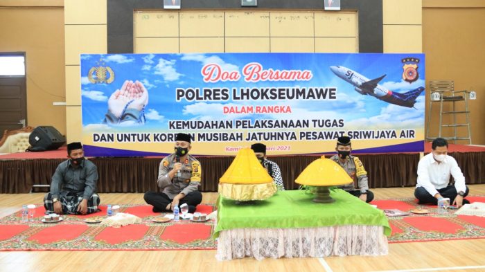 “Polres Lhokseumawe beserta jajaran, turut berduka cita sedalam-dalamnya atas musibah kecelakaan pesawat Sriwijaya Air rute Jakarta – Pontianak. Semoga keluarga korban diberikan ketabahan dan kekuatan dalam menghadapi musibah ini,” ujarnya.