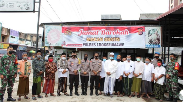 LHOKSEUMAWE – Polres Lhokseumawe dibawah kepemimpinan AKBP Eko Hartanto, S.I.K, M.H kembali melanjutkan program Jum’at baraqah ditahun 2021 dengan berbagi ratusan paket Nasi kepada ulama, tokoh masyarakat dan warga di wilayah hukum Polres Lhokseumawe.