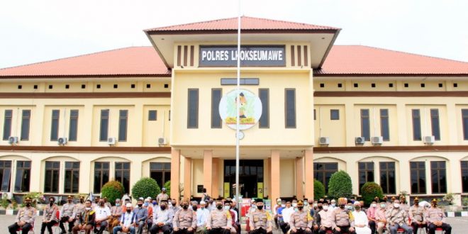 LHOKSEUMAWE – Kapolres Lhokseumawe AKBP Eko Hartanto, S.I.K, M.H, hari ini, Jum’at ( 15/01/2021), menggelar silaturrahmi dengan bilal mesjid di wilayah hukum Polres Lhokseumawe.