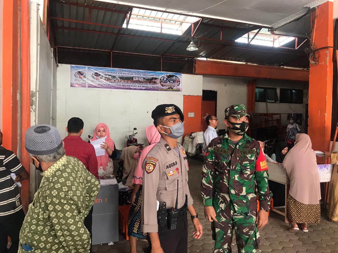 LHOKSEUMAWE – Polres Lhokseumawe mengerahkan Tim URC SiAGAM Satuan Sabhara bersama TNI mengamankan penyaluran bantuan sosial tunai (BST) di Kantor Pos Lhokseumawe Jln. Samudera, Kp Jawa Lama Kecamatan Banda sakti Kota Lhokseumawe, sabtu (09/01/2021).
