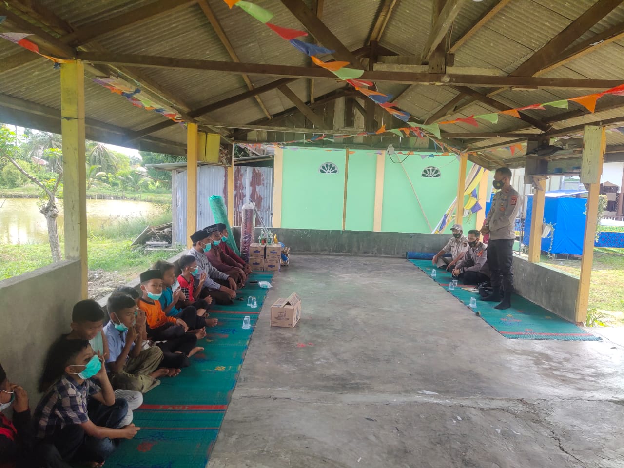 Pada kesempatan itu, Kapolsek juga memberikan bantuan berupa sembako, Masker, Wipol Disenfektan dan Ambal Sajadah dan langsung diterima oleh Pimpinan Dayah Bahrul Ulum,Tgk Muzakir.