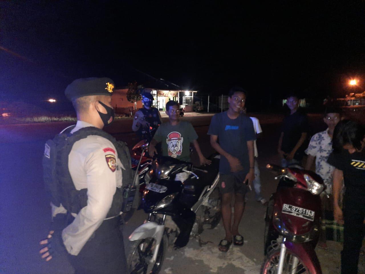 LHOKSEUMAWE – Tim Unit Reaksi Cepat (URC) Siagam Sat Sabhara Polres Lhokseumawe melaksanakan patroli rutin, dalam kegiatan itu personil mengimbau kepada masyarakat agar tidak berkerumun, Jumat (29/1/2021) malam.