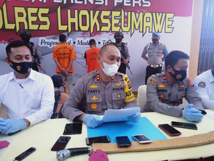 Kapolres Lhokseumawe AKBP Eko Hartanto SIK MH dalam konferensi pers di Mapolres Lhokseumawe, Senin (25/1/2021) mengatakan, IS ditangkap berdasarkan Laporan Polisi: LP/ 03 /I /2021/ Aceh / Res Lsmw / Sek Muara Satu, tanggal 21 Januari 2021.