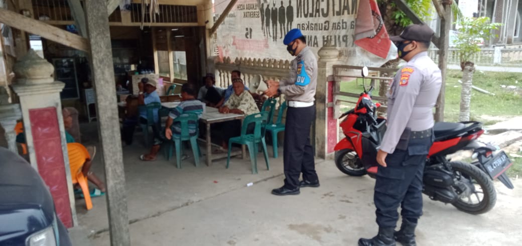 LHOKSEUMAWE – Personil Polsek Samudera melakukan patroli dialogis disejumlah warung dalam rangka sosialisasi dan pendesiplinan Protokol kesehatan (Protkes) di Desa Kuta Geulumpang Kec. Samudera Kab. Aceh Utara, sabtu (09/01/2021) pagi.