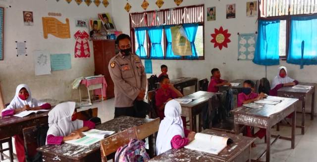 “Selain mengimbau murid, dewan guru dan staf untuk patuhi prokes, personil juga melakukan pengecekan terhadap kelengkapan alat prokes Covid-19. Seperti, tempat cuci tangan, sabun, hand sanitizer dan juga jarak bangku di setiap ruang kelas,” tandasnya.