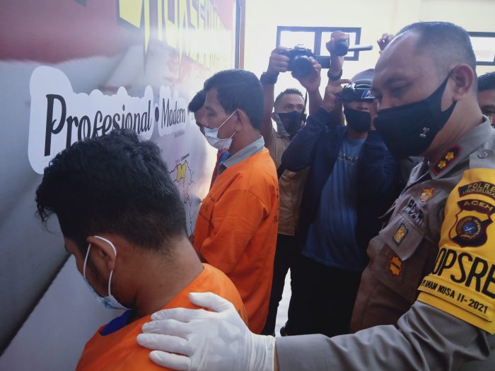 Kapolres Lhokseumawe, AKBP Eko Hartanto, SIK, MH didampingi Kapolsek Blang Mangat, Ipda Fakhrurrazi S.Si dalam konferensi pers di gedung serbaguna Polres Lhokseumawe di hadapan awak media, Jumat (15/1/2021) mengatakan, pelaku merupakan warga Kecamatan Blang Mangat, Kota Lhokseumawe. Kepolisian yang sudah mengantongi identitas pelaku, dipimpin Kapolsek Blang Mangat, Ipda Fakhrurrazi S.Si melakukan penangkapan di rumahnya.
