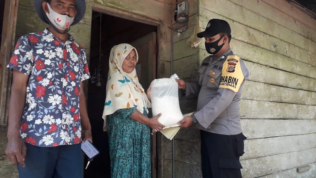 LHOKSEUMAWE – Personil Polsek Gereudong Pase, Polres Lhokseumawe memberikan bantuan sosial (bansos) berupa beras kepada warga terdampak Covid-19 secara door to door, Selasa (12/1/2021).