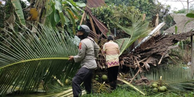 LHOKSEUMAWE – Personil Bhabinkamtibmas Polres Lhokseumawe memberikan pelayanan Quick respon (Respon Cepat) melakukan evakuasi Pohon kelapa tumbang timpa yang menimpa rumah warga di Dusun Cot Teungoh, Gampong Ulee Pulo, Kec. Dewantara, Kab. Aceh Utara, sabtu (09/01/2021) pagi.