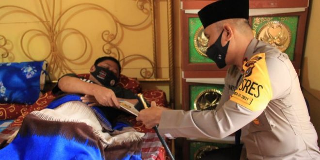 LHOKSEUMAWE- Kapolres Lhokseumawe AKBP Eko Hartanto, S.I.K, M.H, beserta staf dan jajaran hari ini, Jum’at ( 15/01/2021), kembali melangkah memberikan bantuan, perhatian dan kepedulian kepada salah satu personil polres Lhokseumawe yang sakit menahun.