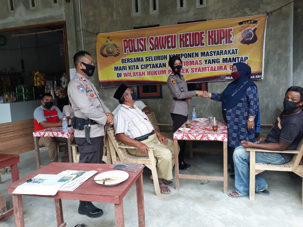 LHOKSEUMAWE – Polsek Syamtalira Bayu, Polres Lhokseumawe melaksanakan kegiatan saweu Keude kupi, Senin (25/1/2021). Dalam giat itu, personil mengharapkan masyarakat ikut menjaga keamanan lingkungan.