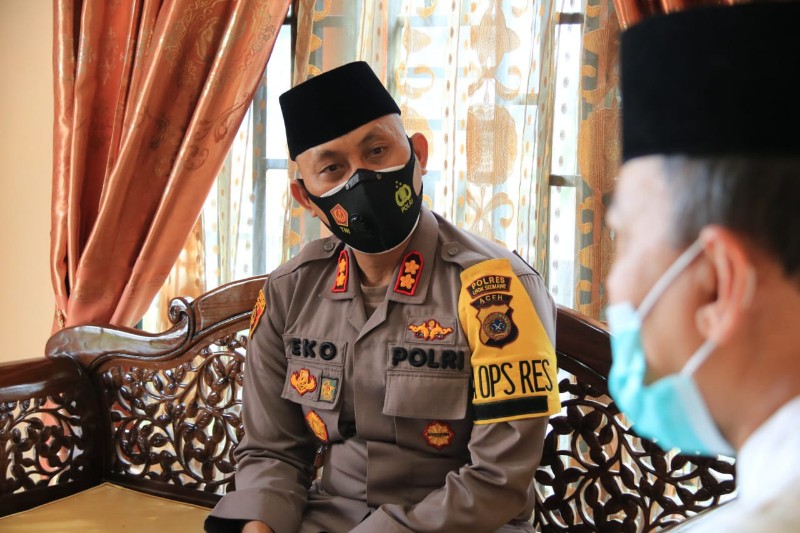 LHOKSEUMAWE – Kapolres Lhokseumawe, AKBP Eko Hartanto SIK, kembali beraktivitas dengan mempererat tali silaturahmi ke beberapa bersama ulama, di Aceh Utara, Rabu (09/01/2021).