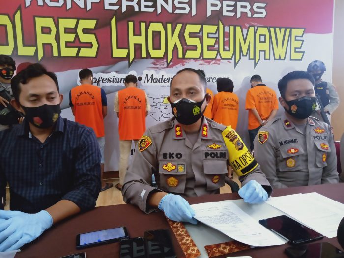 Kapolres Lhokseumawe, AKBP Eko Hartanto SIk MH dalam konferensi pers yang didampingi Kapolsek Dewantara, AKP Nurmansyah di gedung serbaguna Mapolres Lhokseumawe, Jumat (8/1/2021) mengatakan, tersangka D atau pelaku utama dalam kasus Curat ini merupakan residivis dalam kasus penyalahgunaan Narkotika golongan I yang telah divonis oleh Pengadilan Negeri Lhoksukon pada tahun 2018 lalu.
