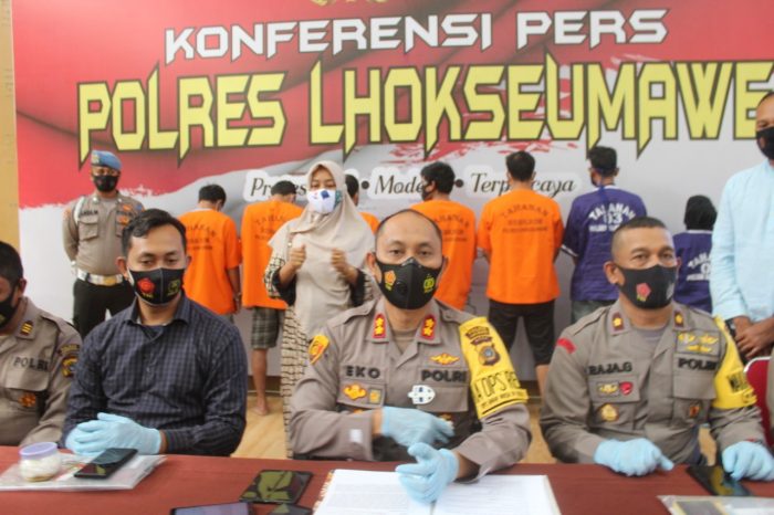 Kapolres Lhokseumawe AKBP Eko Hartanto SIK MH yang juga didampingi Kapolsek Banda Sakti, Iptu Arifin Ahmad di hadapan awak media saat konferensi pers di gedung serbaguna Mapolres Lhokseumawe, Jumat (12/2/2021) mengatakan, kasus tersebut terungkap setelah korban, Desta Vijal (25) warga Pusong Baru, Kecamatan Banda Sakti, Kota Lhokseumawe membuat laporan kepada polisi.