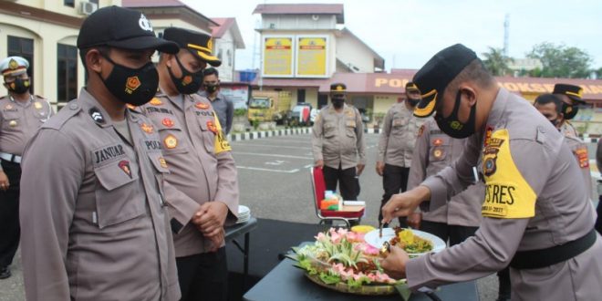 Kapolres Lhokseumawe AKBP Eko Hartanto, S.I.K, M.H kepada personil mengatakan, pada kesempatan pagi hari ini Alhamdulillah semuanya diberikan kesehatan oleh Allah subhanahu wa ta’ala untuk sama-sama merayakan atau memperingati pada moment yang simple ini.