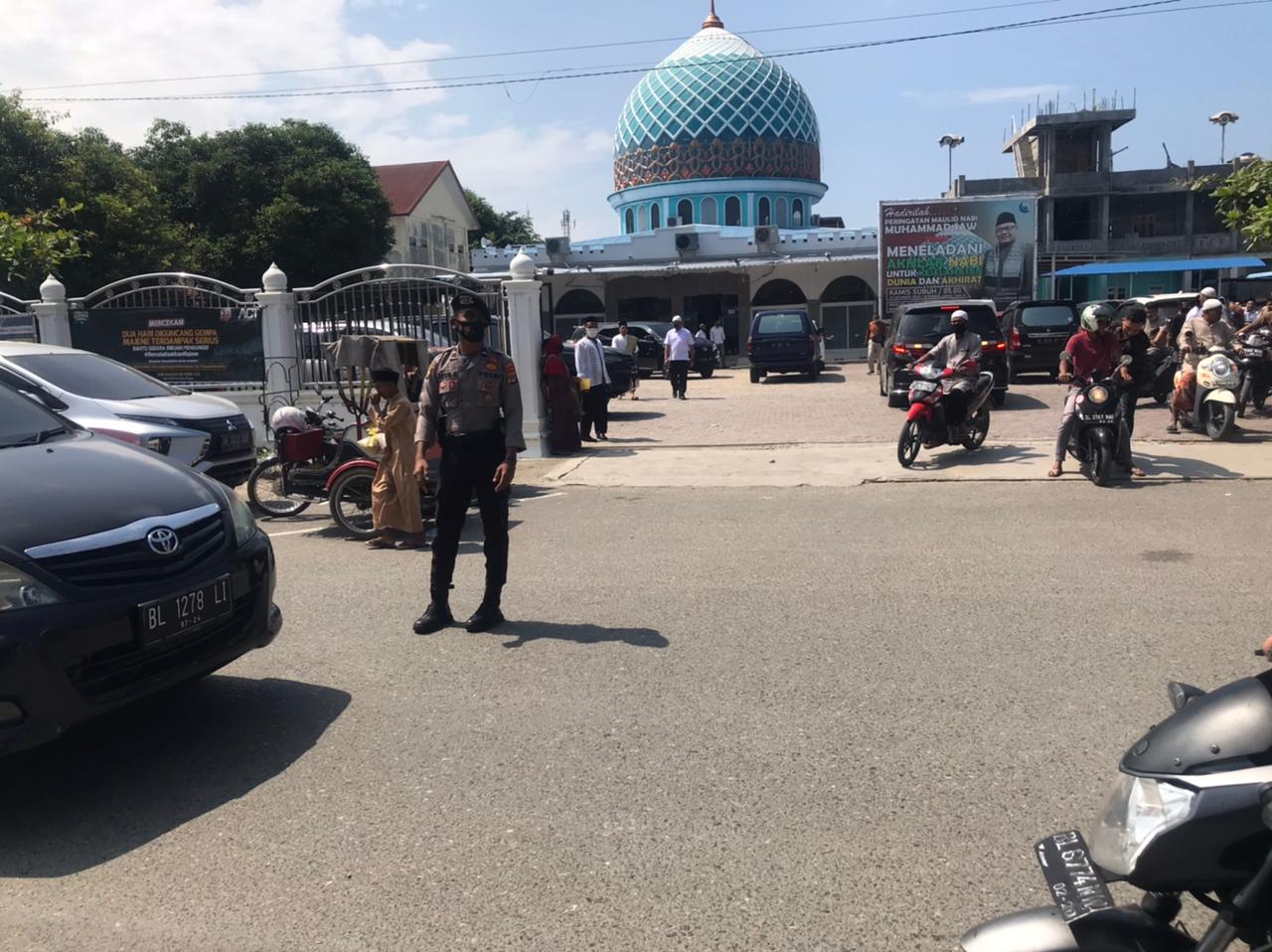 Kapolres Lhokseumawe AKBP Eko Hartanto SIK MH melalui Kasat Sabhara AKP Abdul Mu’in mengatakan, sejumlah personil melakukan pengamanan di depan masjid tersebut dimulai pada pukul 13.30 WIB sampai dengan selesai.