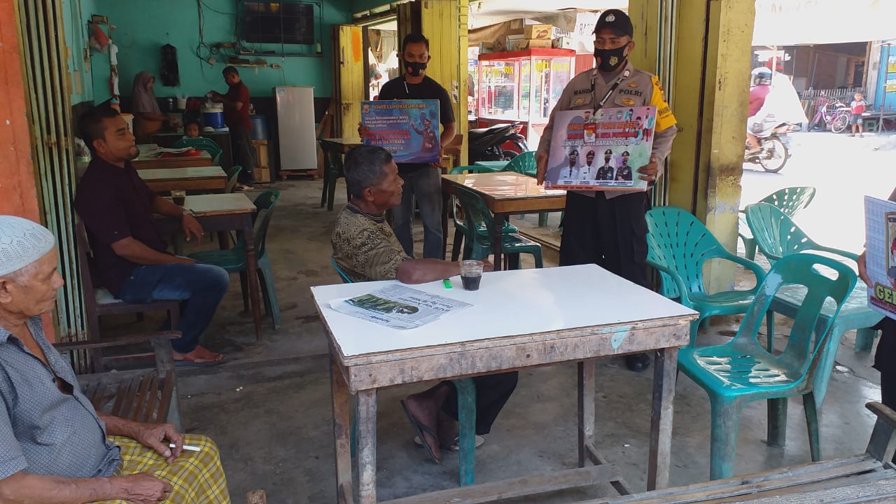 Personil mengimbau masyarakat tetap mematuhi prokes, hal ini sebagai upaya bersama mencegah dan menekan angka penyebaran Covid-19 di wilayah hukum Polsek Samudera.