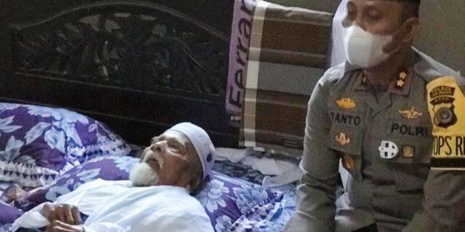 LHOKSEUMAWE – Kapolres Lhokseumawe AKBP Eko Hartanto SIK MH, Sabtu (13/2/2021) membesuk seroang ulama kharismatik Al-Mukarram Al-Mursyid Tgk H. Abdul Wahab atau akrab disapa dengan panggilan Abu Matang Perlak.
