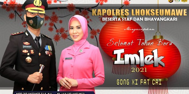 “Kapolres Lhokseumawe berserta Staf dan jajaran mengucapkan selamat tahun baru Imlek 2022, Gong Xi Fat Cai” berikut isi konten ucapan selamat imlek tersebut.