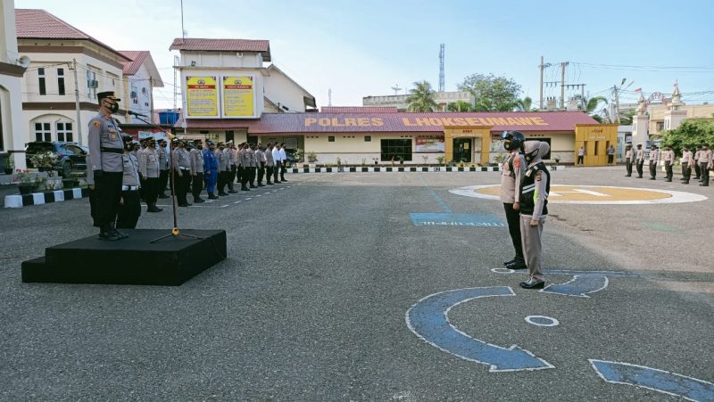 LHOKSEUMAWE – Polres Lhokseumawe gelar apel kesiapan Bhabinkamtibmas dan tenaga kesehatan Polri sebagai tracer dan Vaksinator Covid-19 dihalaman Mapolres Lhokaeumawe, kamis (11/02/2021) sore.