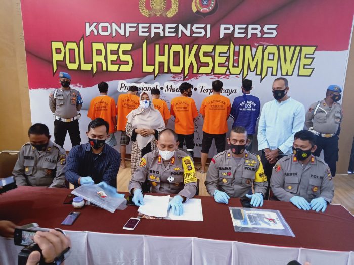 “Konferensi pers ini juga sebagai media sosialisasi kepada masyarakat terkait bahaya peredaran narkoba yang kian meresahkan di wilayah hukum Polres Lhokseumawe,” pungkas Kapolres yang juga didampingi Wakapolres Lhokseumawe, Kompol Raja Gunawan, SH, MSM.