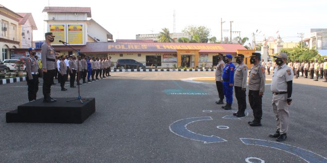 LHOKSEUMAWE – Kapolres Lhokseumawe AKBP Eko Hartanto, S.I.K, M.H memimpin langsung upacara sumpah dan penandatangan pakta integritas Narkoba terhadap personil yang berlangsung di Halaman Mapolres Lhokseumawe, kamis (18/02/2021) sore.