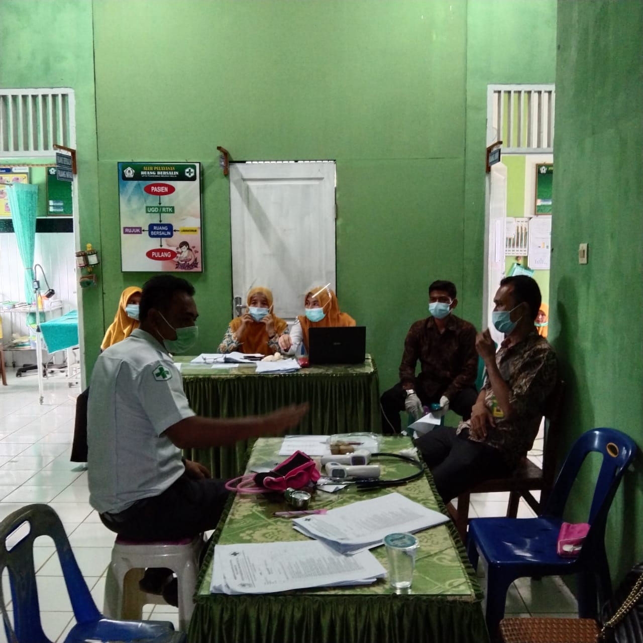 LHOKSEUMAWE – Personil Polsek Meurah Mulia bersama anggota Koramil amankan tempat penyimpanan Vaksin Covid-19 Sinovac di Puskesmas setempat, Kamis (11/2/2021).
