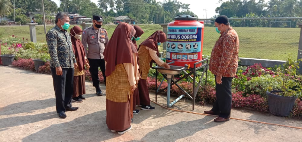 LHOKSEUMAWE – Polsek Meurah Mulia melakukan pengecekan sarana protokol kesehatan (Prokes) di Sekolah Menengah Atas (SMA) Negeri 1 Meurah Mulia, Aceh Utara, wilayah hukum Polres Lhokseumawe, Kamis (4/2/2021).