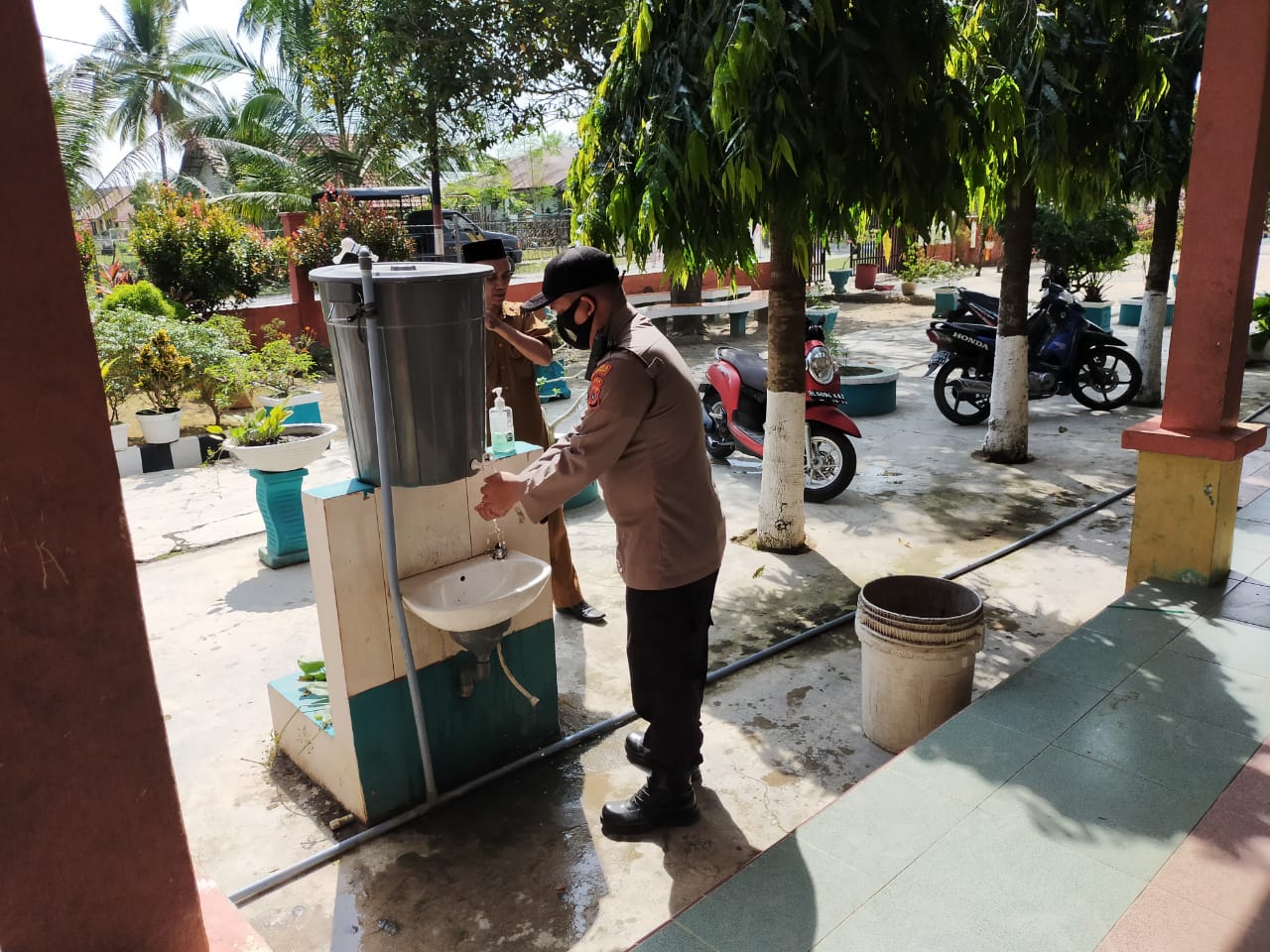 Kapolres Lhokseumawe AKBP Eko Hartanto SIK MH melalui Kapolsek Samudera, AKP Erpansyah Putra mengatakan, dalam kegiatan ini personil mengecek sarana Prokes, seperti tempat cuci tangan dan penyediaan masker.