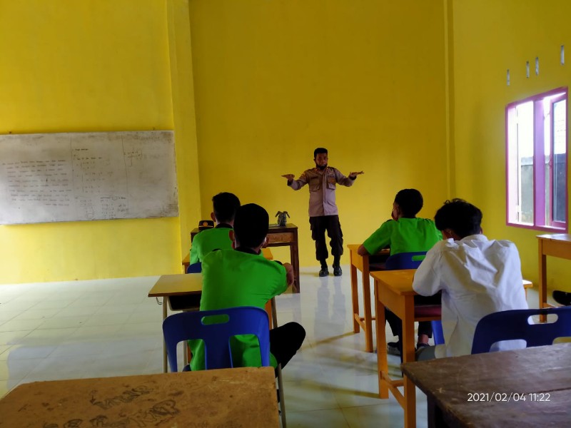 ACEH UTARA – Kepolisian Resor Lhokseumawe Sektor Syamtalira Bayu sosialisasi protkes di SMK Bustanul Yatama Kecamatan Syamtalira Bayu, Kabupaten Aceh Utara, kamis (04/02/2021) pagi