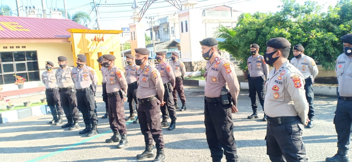 LHOKSEUMAWE – Personil PAM Obvit dan Sat Sabhara Polres Lhokseumawe menggelar apel Kesiapsiagaan, kegiatan tersebut berlangsung di halaman apel Mapolres Lhokseumawe, Senin (15/2/2021).