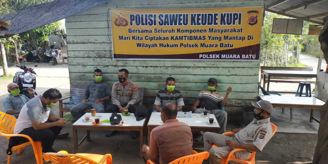 LHOKSEUMAWE – Personil Polsek Muara Batu, Polres Lhokseumawe melaksanakan kegiatan sawue keude kupi, kamis (04/2/2021).