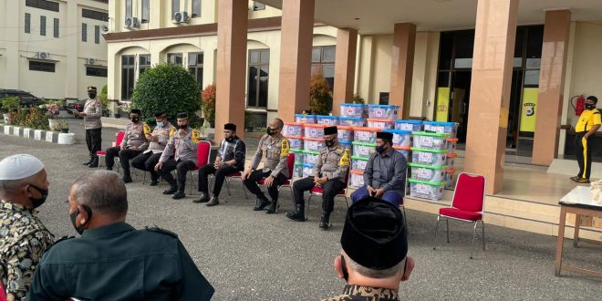 Pada kesempatan tersebut, Kapolres Lhokseumawe juga menyerahkan bantuan berupa paket sembilan bahan pokok (sembako).