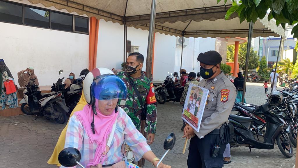LHOKSEUMAWE – Tim Unit Reaksi Cepat (URC) Siagam Sat Sabhara Polres Lhokseumawe melaksanakan kegiatan sosialisasi Adaptasi Kebiasaan Baru (AKB) dan membagikan masker, Rabu (17/2/2021).
