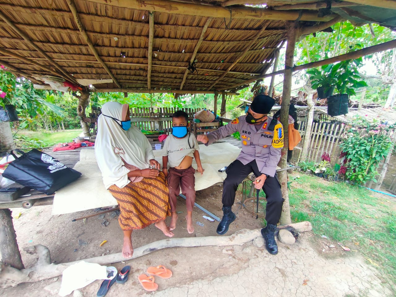 LHOKSEUMAWE – Kaporles Lhokseumawe AKBP Eko Hartanto SIK MH mengunjungi Gampong Lhok Krek Kecamatan Sawang, Aceh Utara dalam rangka menjemput “Kue Surga” di kediaman penderita Thalasemia, Rabu (14/4/2021).