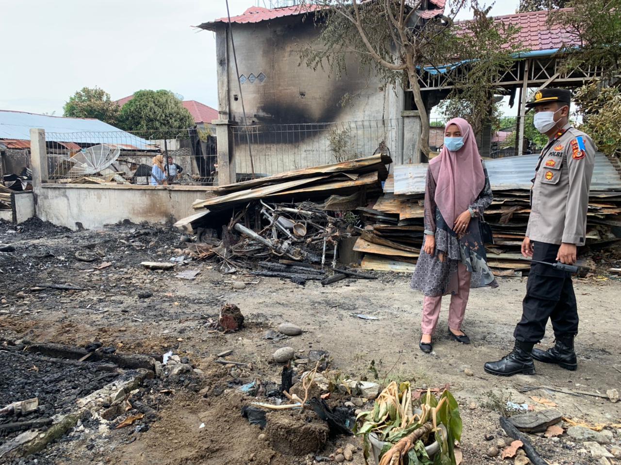 Selain mengunjungi posko pengungsian, Kapolsek turut didampingi ketua ranting Bhayangkari juga meninjau lokasi kebakaran yang menghanguskan 11 unit rumah warga pada Jumat (23/4/2021) malam tersebut.