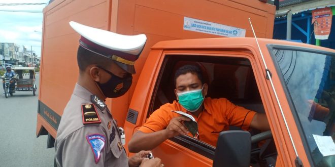 “Personil membagikan masker kepada para pengguna kendaraan yang tidak mengenakannya. Selain itu, juga dibagikan kepada masyarakat yang memakai, tetapi tidak memiliki cadangan masker,” ujarnya.