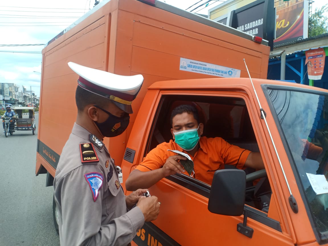 “Personil membagikan masker kepada para pengguna kendaraan yang tidak mengenakannya. Selain itu, juga dibagikan kepada masyarakat yang memakai, tetapi tidak memiliki cadangan masker,” ujarnya.