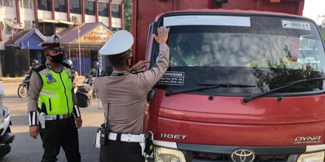 LHOKSEUMAWE – Guna mendukung program menuju Aceh Zero Traffic Accident 2021 dan menekan angka kecelakaan lalu lintas, Polantas Polres Lhokseumawe menempelkan stiker pada kendaraan di lintas jalan Nasional Medan – Banda Aceh, Rabu (21/4/2021).