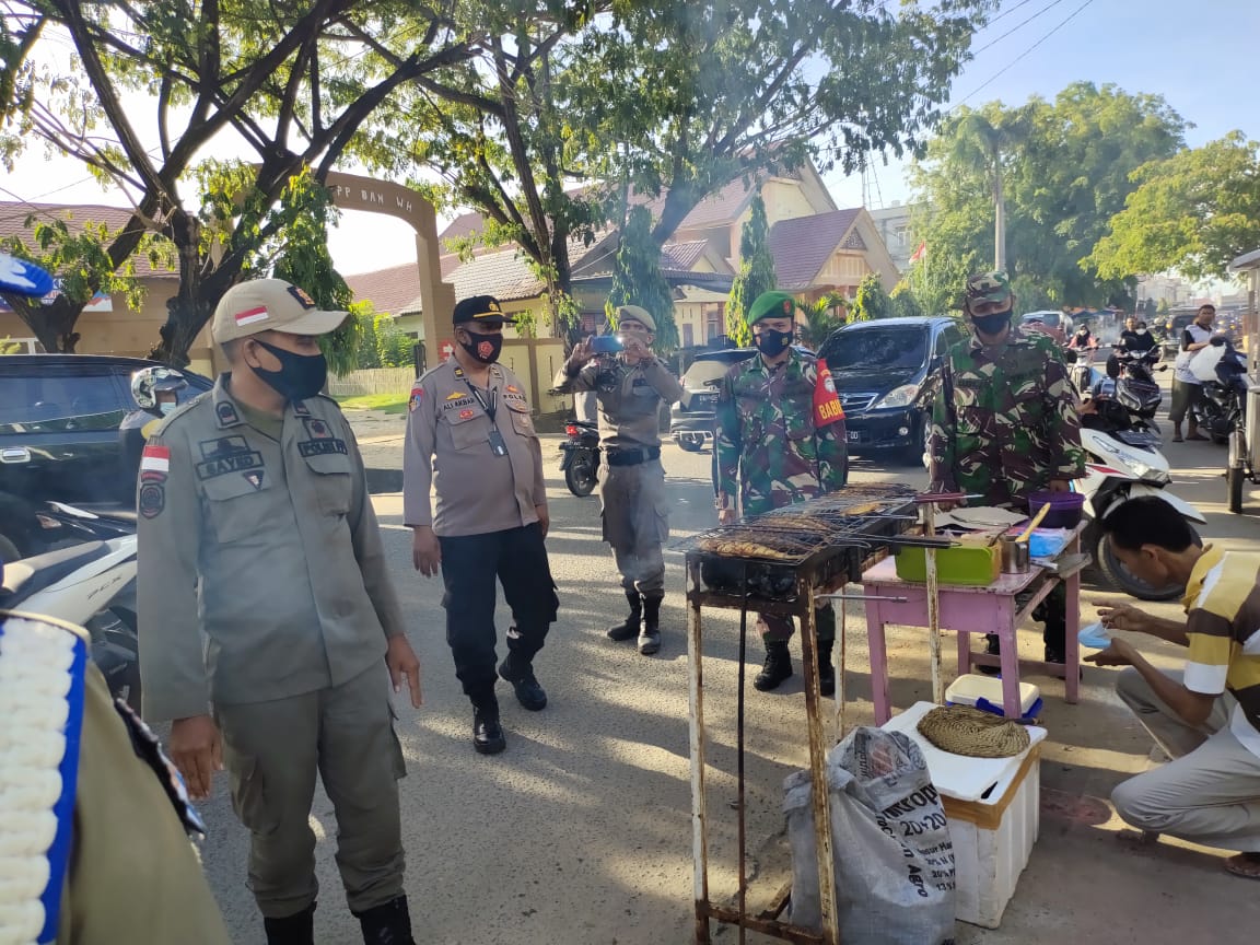 LHOKSEUMAWE – Polres Lhokseumawe bersama tim gabungan melaksakan Ops Yustisi sampai menjelang waktu berbuka puasa, personel menyisir kawasan pasar Inpres, Kecamatan Banda Sakti, Kota Lhokseumawe, Rabu (28/4/2021).