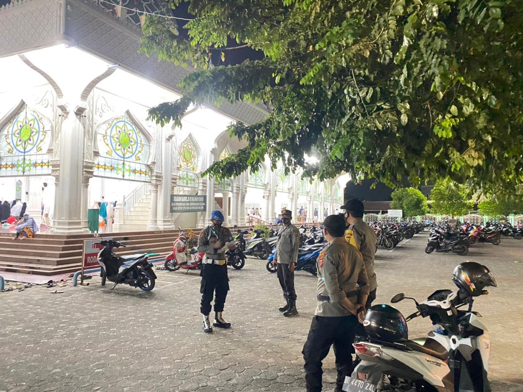 LHOKSEUMAWE – Pengamanan shalat Isya dan Tarawih di masjid-masjid di wilayah hukum Polres Lhokseumawe masih berlanjut, pengamanan tersebut dilakukan sampai berakhirnya bulan suci Ramadhan, Jumat (23/4/2021) malam.